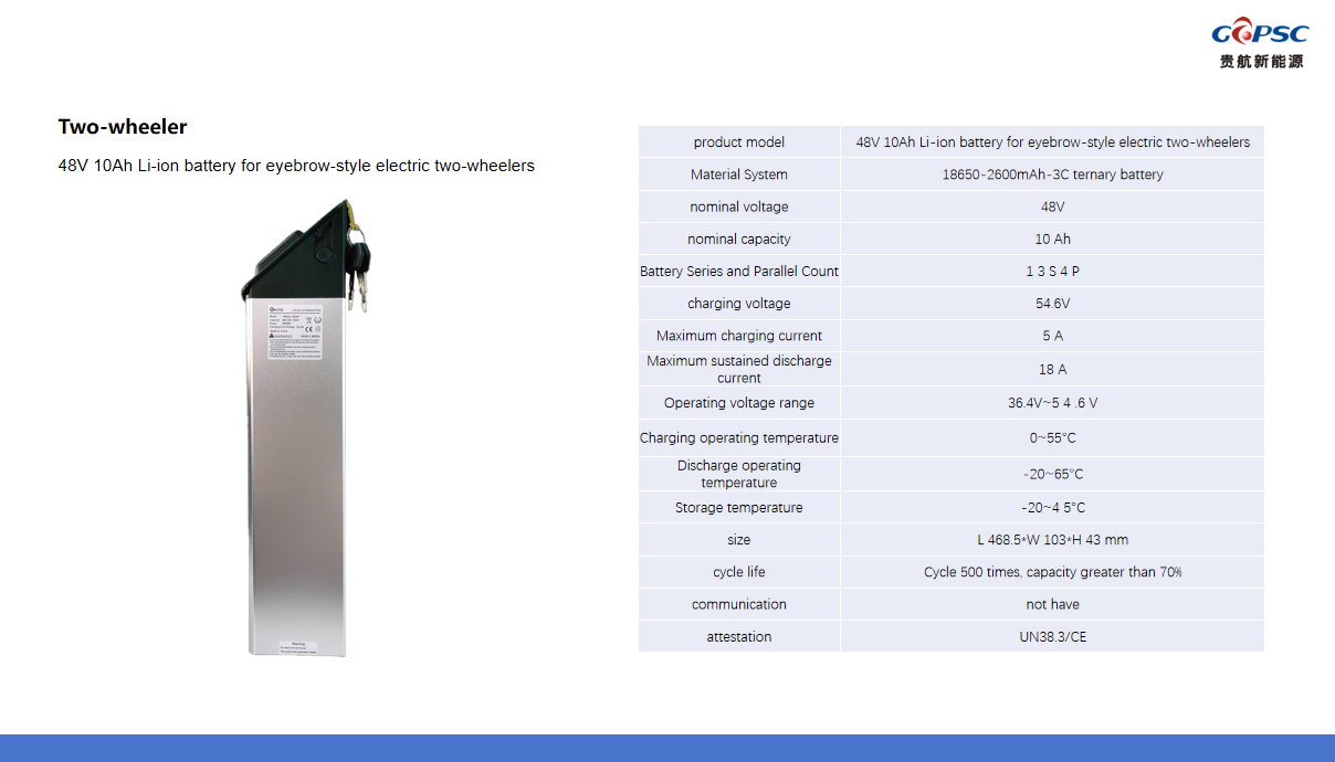48V 10Ah Li-ion battery for eyebrow-style electric two-wheelers Images |